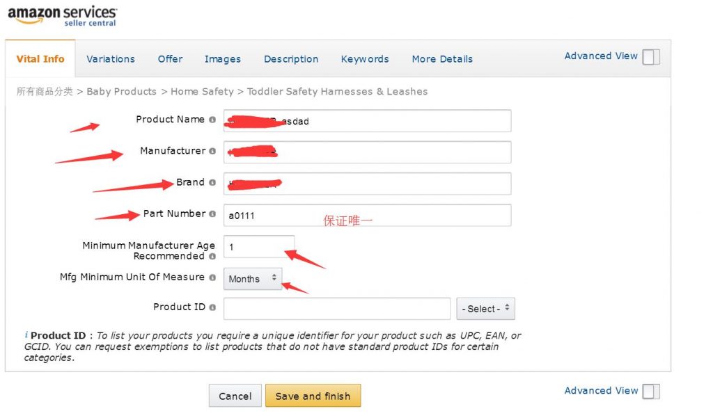 - 找到对应类目填上有星号的必填项,发现Save and Finish 可以点击说明备案生效