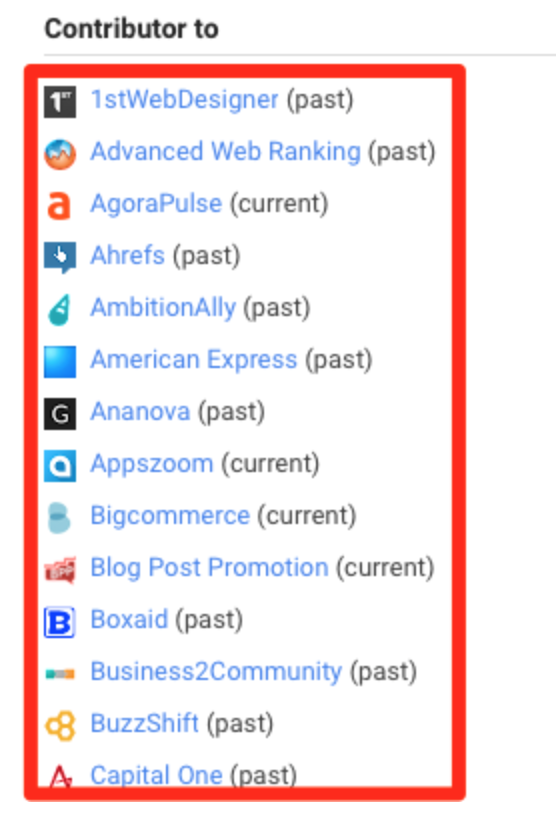 或者在同行业红人发布过客座博客的站点发布文章. 举例: Kristi Hines 的Google Plus简介里,你可以看到他在下面的网站上发过客座博客