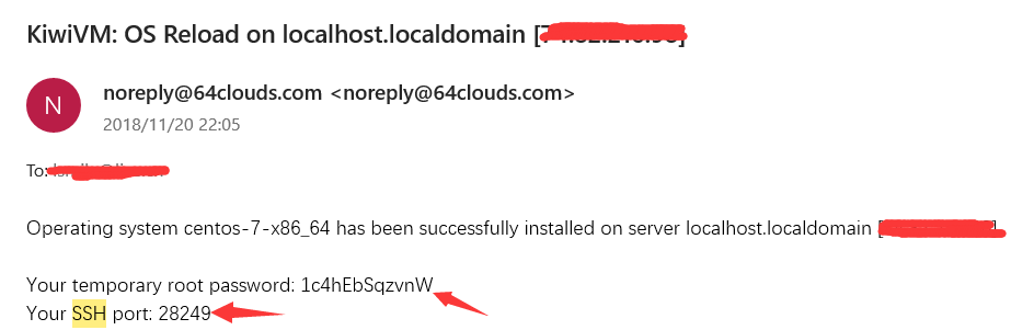 第一:VPS部署完成之后,查看注册邮箱,会收到一封VPS的邮件