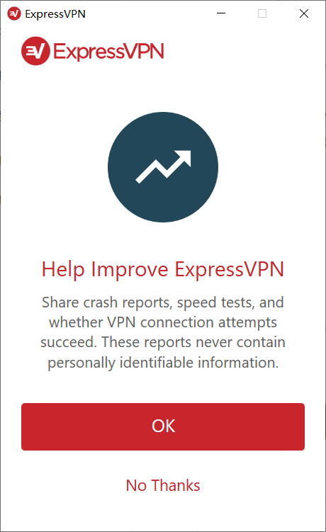 这个是询问你是否愿意帮助Expressvpn 改进啥的,选okay 会分享错误报告,这个随便选