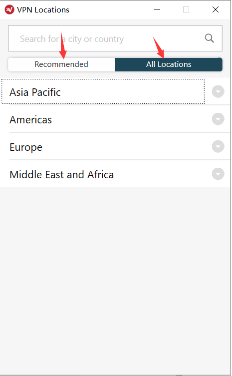- 选择 VPN地区