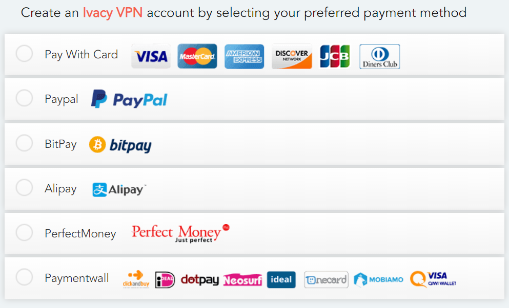 Ivacy VPN 的用户比较全球化,所以支持蛮多支付方式