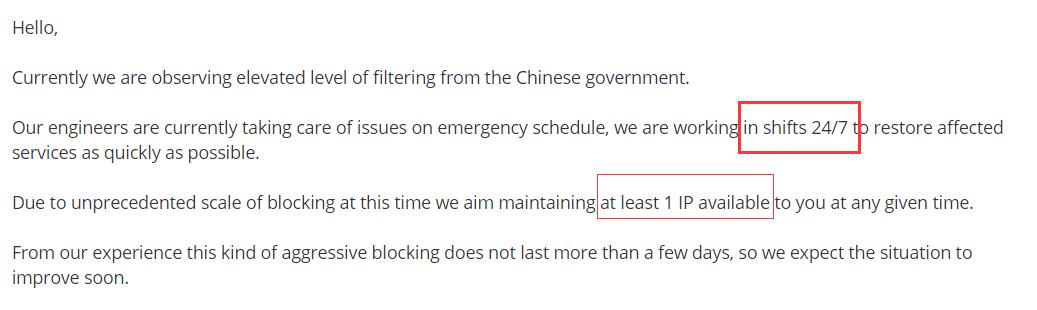 - 任何时候保证至少一个IP可用,相比其他VPN服务商的“过段时间会好点或者等等看”JMS已经非常给力了。