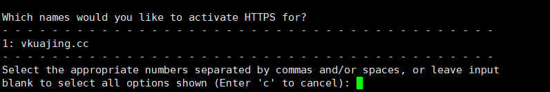 问你哪个域名希望被安装SSL ,选择数字即可,我这里就选1 ,按Enter