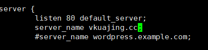 用你的网站替换掉Server_name _ 中的下划线; 替换后就变成 Server_name vkuajing.cc 【如下图】【nano中要用用键盘上下键移动光标】