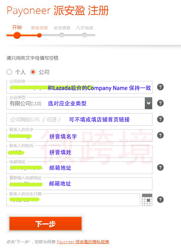 > 如果是做Lazada的收款,一定要选择公司来注册收款账号.(不用担心做账问题,可以选个人银行卡提现)