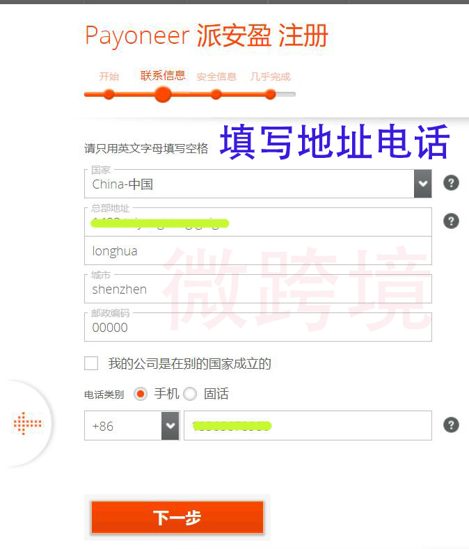 2. 填写联系信息,点击下一步