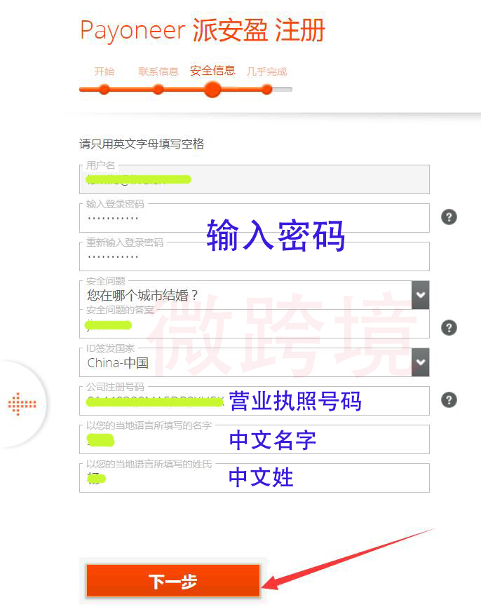**3.**输入账号密码,安全信息; 点击下一步