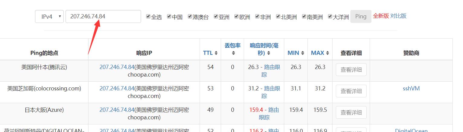 即可查看各地区连接状况 , 连接状况看丢包率就可以了。