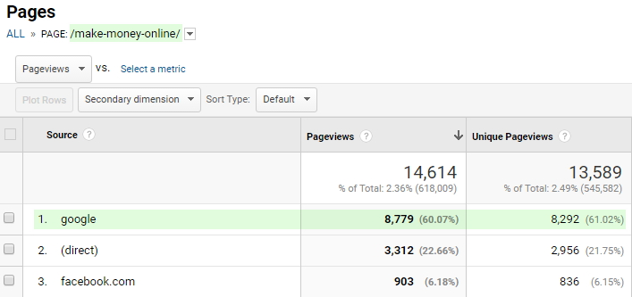 换句话来说, 最后一季度中有61%的访客来自谷歌