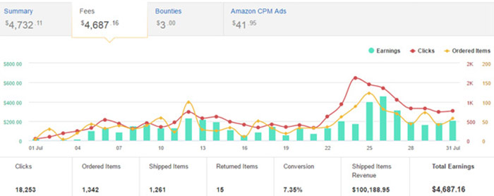 下面是Amazon affiliate的收入图