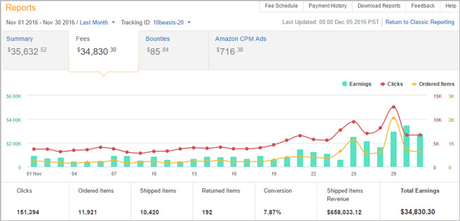 下面是Amazon affiliate的收入图