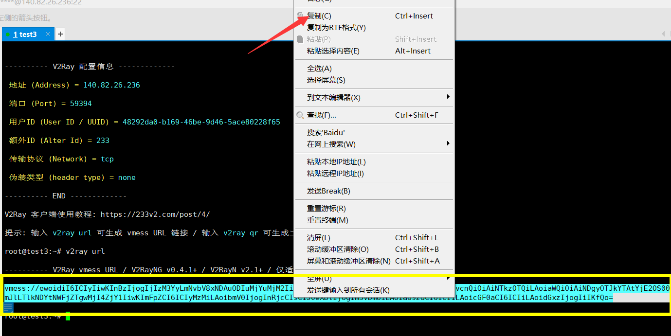 复制刚才复制的代码 Vmess地址
